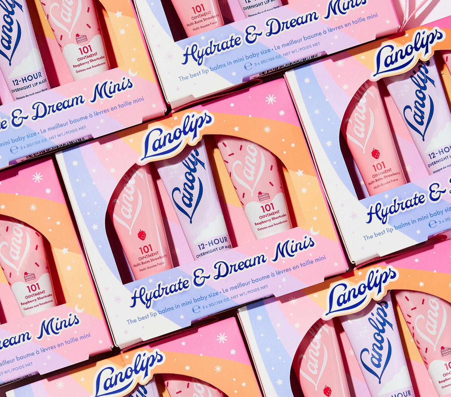 Each Hydrate + Dream Minis Set includes a trio of our best-selling Lanolips balms - including the 101 Ointment Strawberry, 12 Hour Overnight Lip Mask, and 101 Ointment Raspberry Shortcake, all in the perfect mini size for on-the-go hydration.
